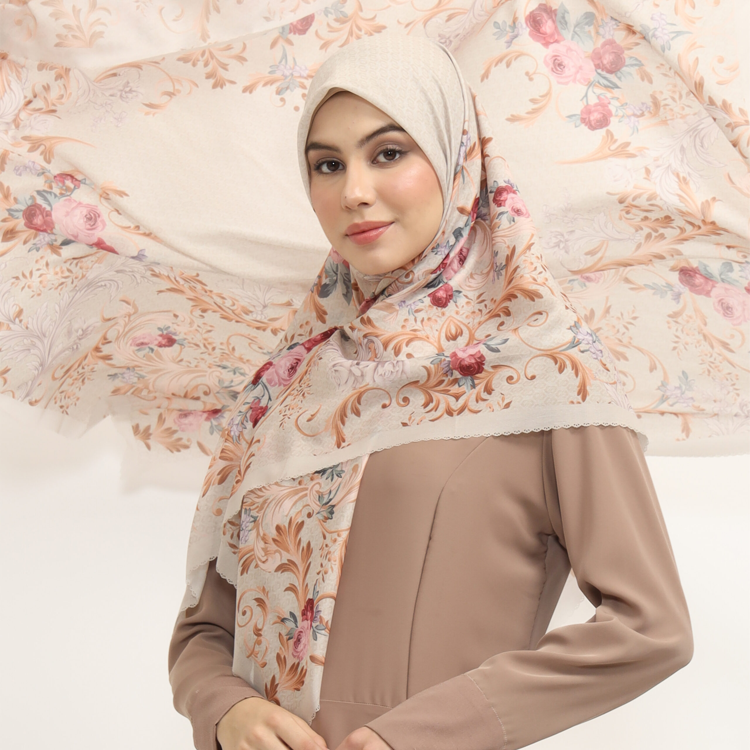 Terinspirasi dari keindahan alam dan kelembutan warna alami, Aruna Series hadir dengan motif elegan yang merefleksikan harmoni antara keanggunan dan kesederhanaan. Scarf hijab yang tak hanya melengkapi tampilan, tetapi juga menghadirkan pesona yang timeless.