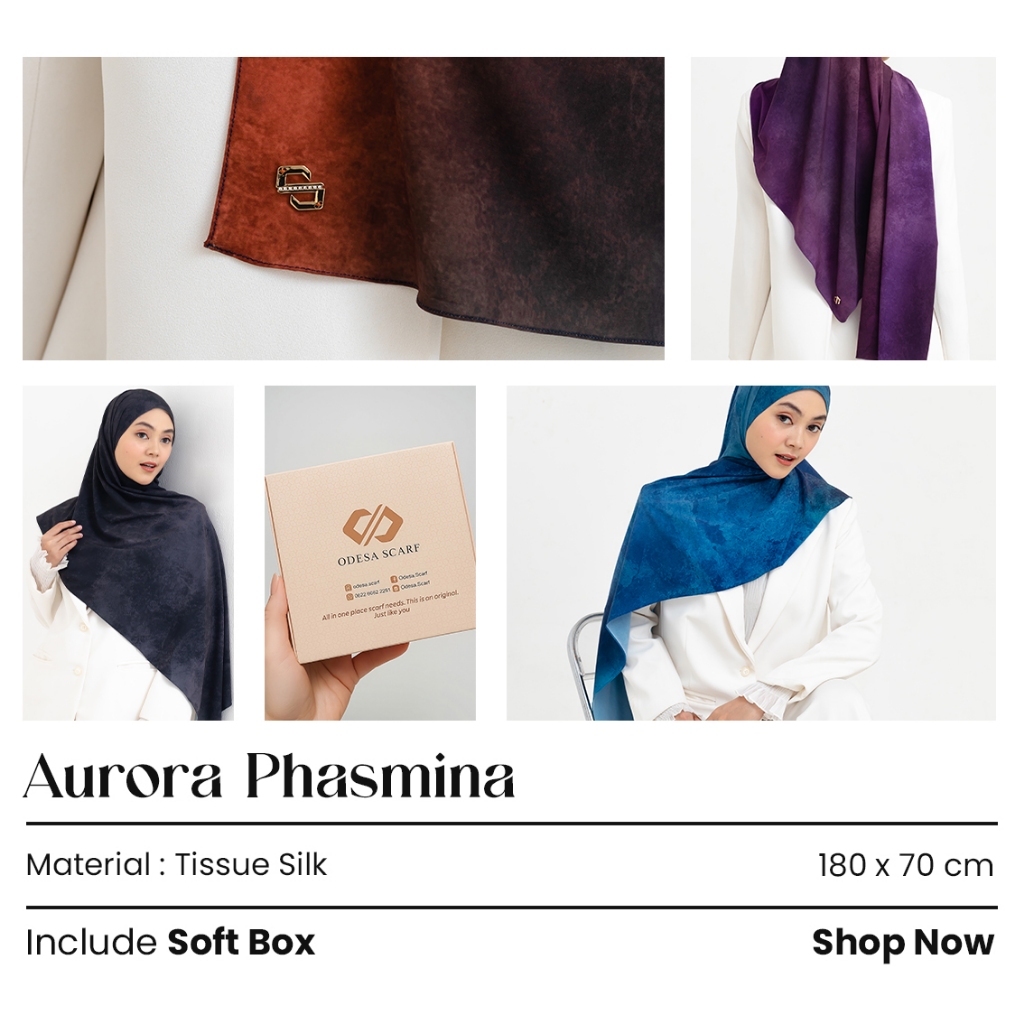 Scarf elegan dengan sentuhan motif yang terinspirasi dari indahnya cahaya langit malam.